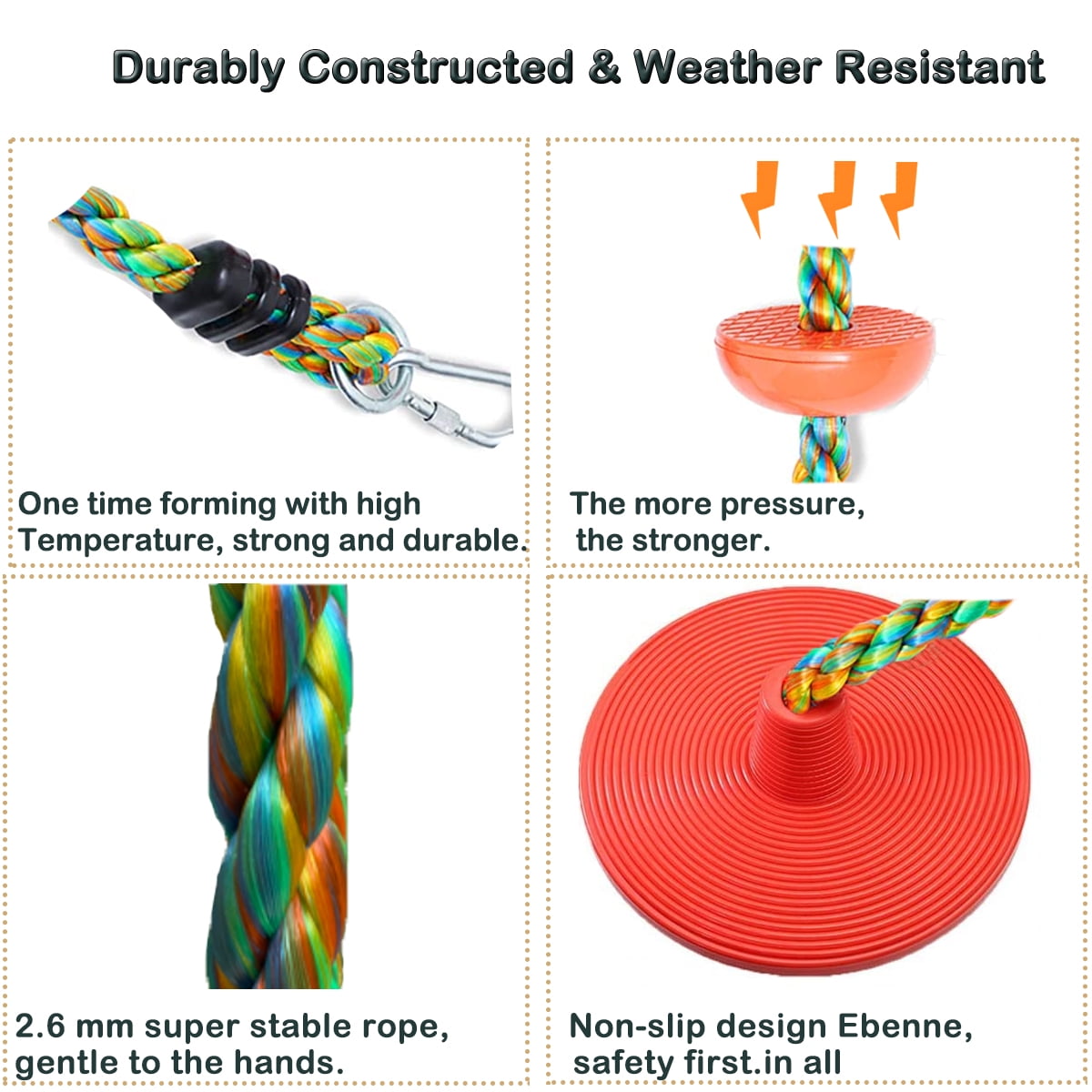 STABLE & SAFE & DURABLE - This sturdy, braided tree climbing rope for kids is made for action. Made from durable materials, it stands up to the elements yet is gentle on children's hands.