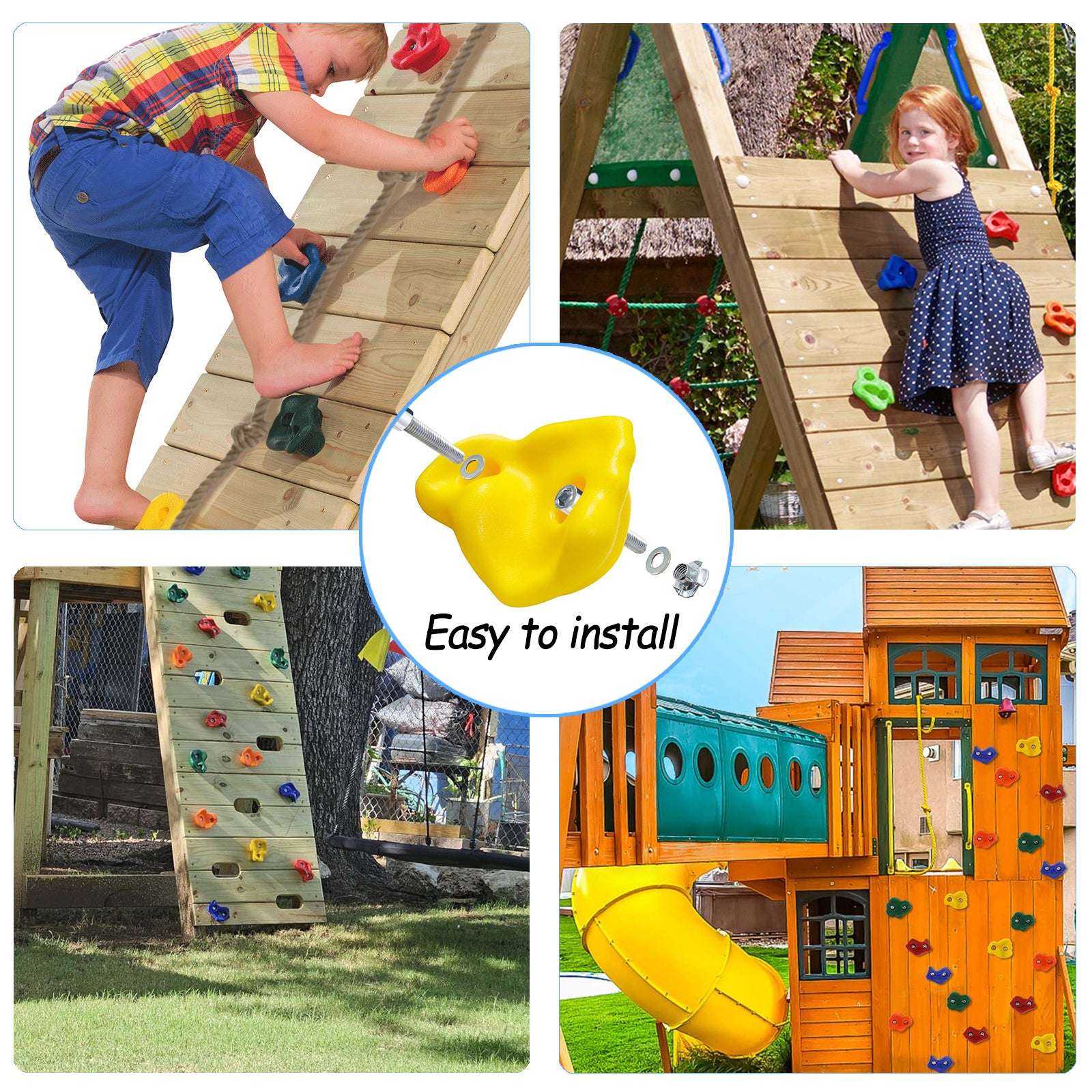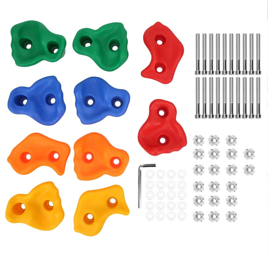 - These climbing grips and holds can greatly inspire children's passion for physical activities, promoting their physical coordination, strength, flexibility, and balance.